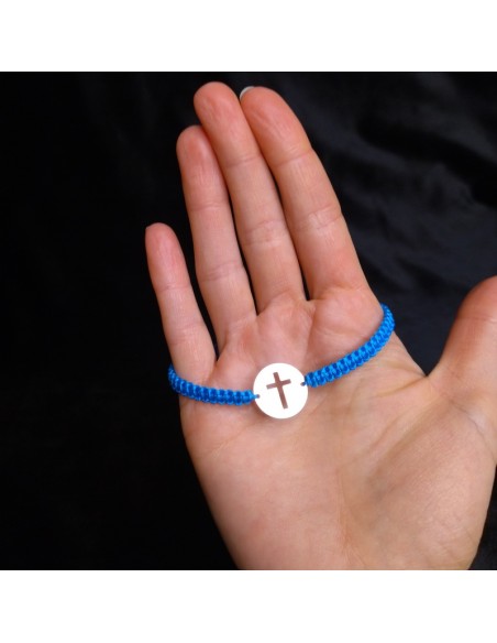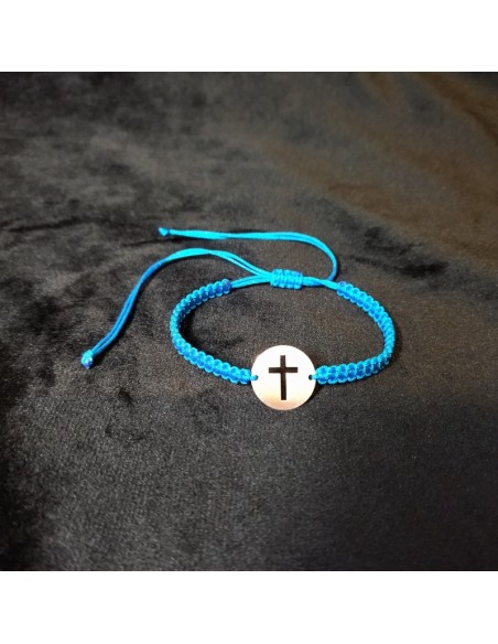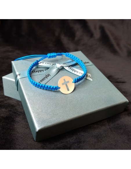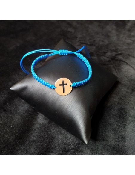 Bratara este lucrata manual din snur si cruciulita din argint.