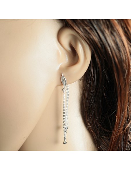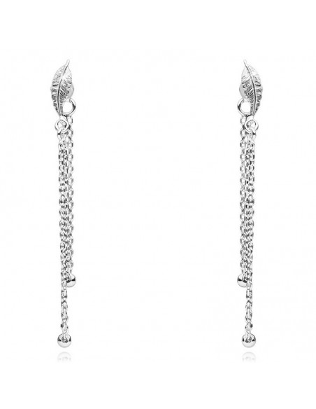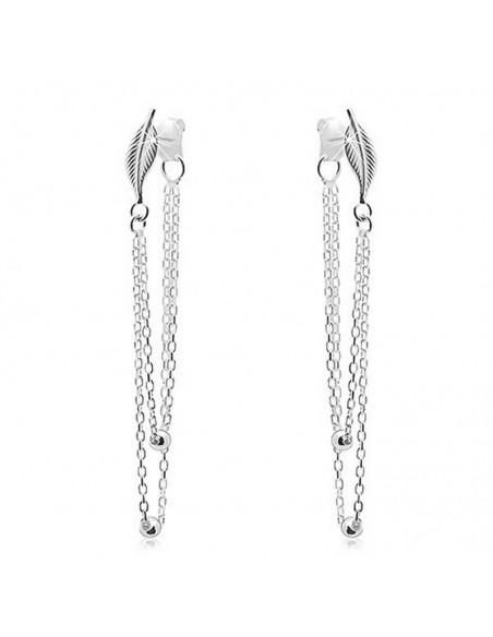 Cercei Lungi Argint Frunza cu Lant si Bila