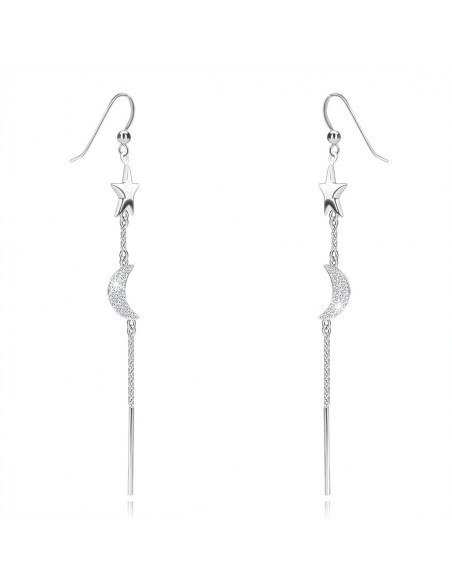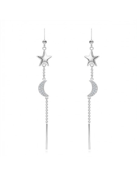 Cercei Lungi Argint 925 Stea Lant Semiluna
