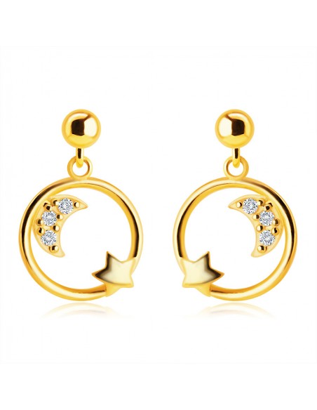 Cercei Aur 14K Cerc Luna Stea Diamante