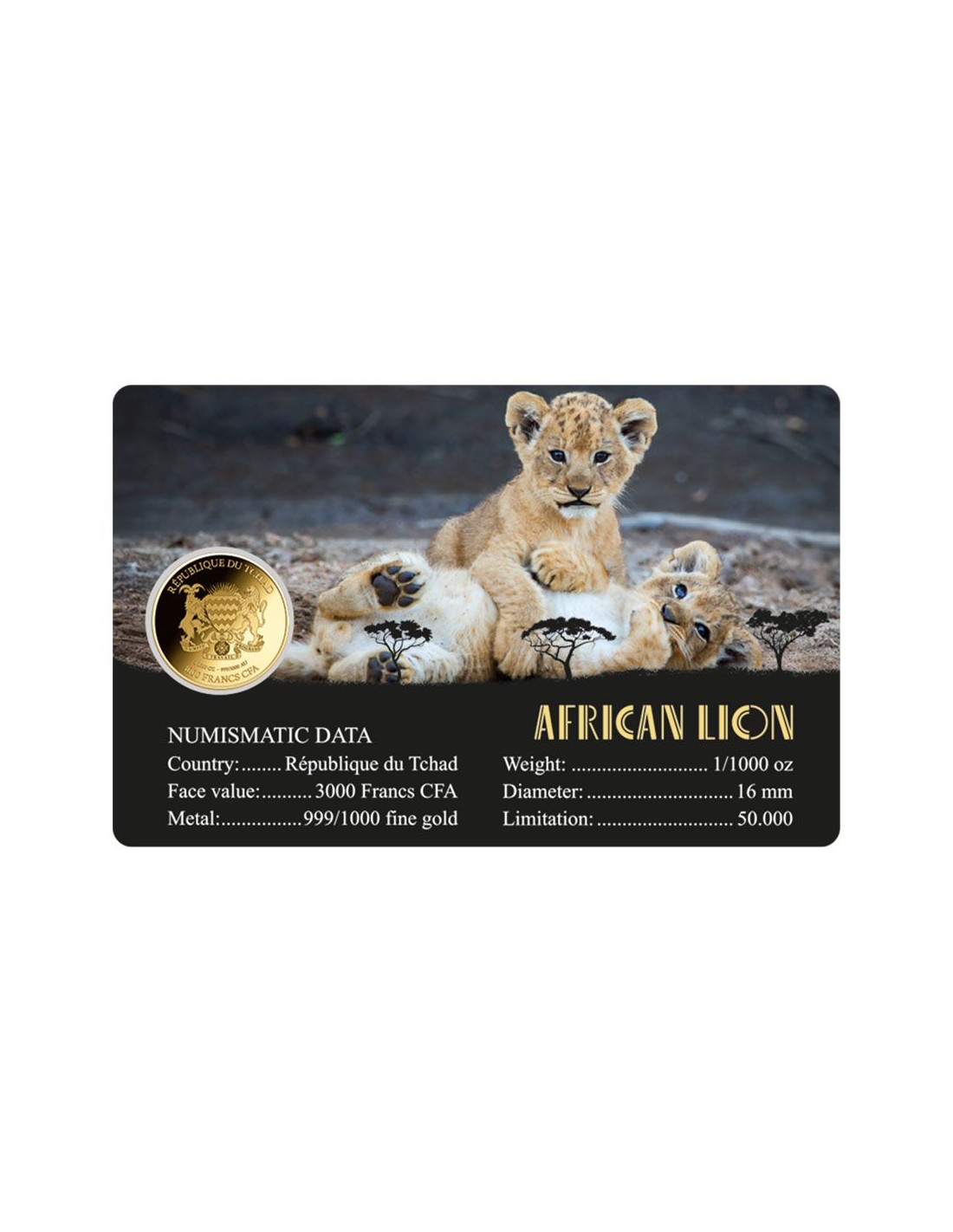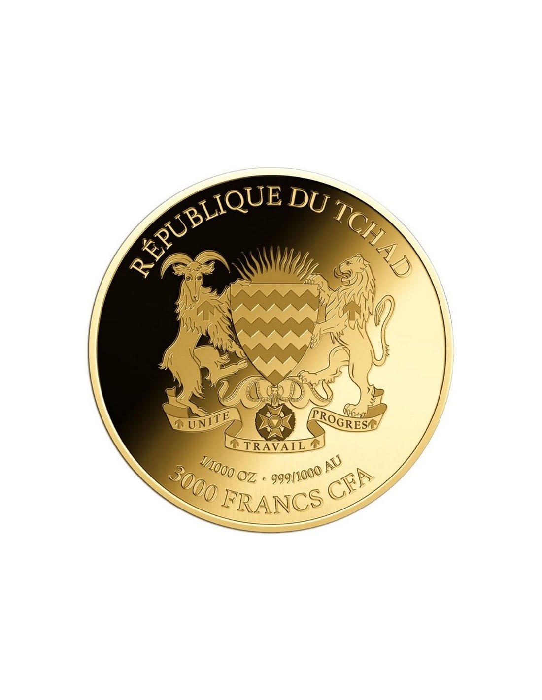 Moneda din Aur 24k Elefant African- 3000 franci Ciad 1\1000 oz